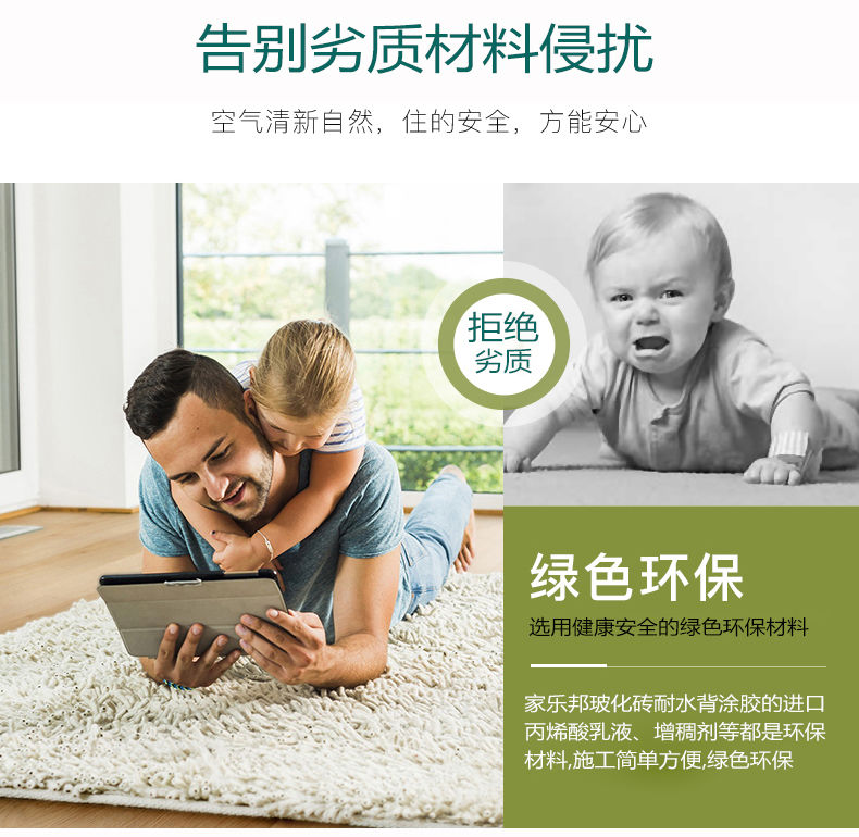 家樂邦玻化磚耐水背涂膠客戶評價 評價: 背涂膠質量真的不錯哦,貼磚師傅說好用,不負所望,很厲害的產品!家里有人是...