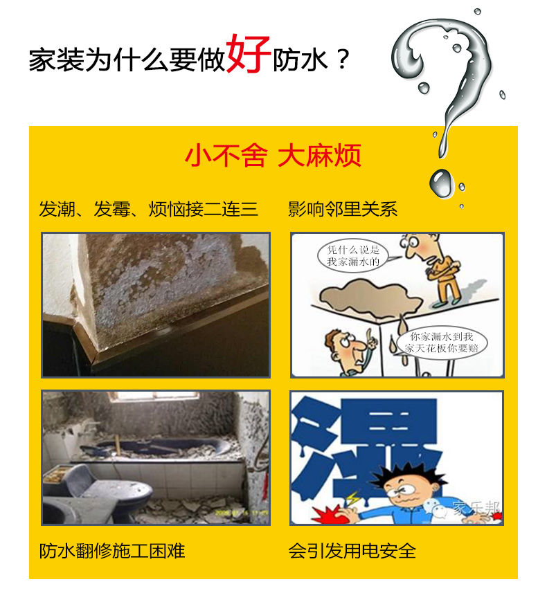 解釋:【 防水用家樂邦,真滴要得!】親,家樂邦防水是鋒涇集團旗下重點品牌,我們有專業的運營團隊,為品牌打造質量,強大的售前售后團隊!