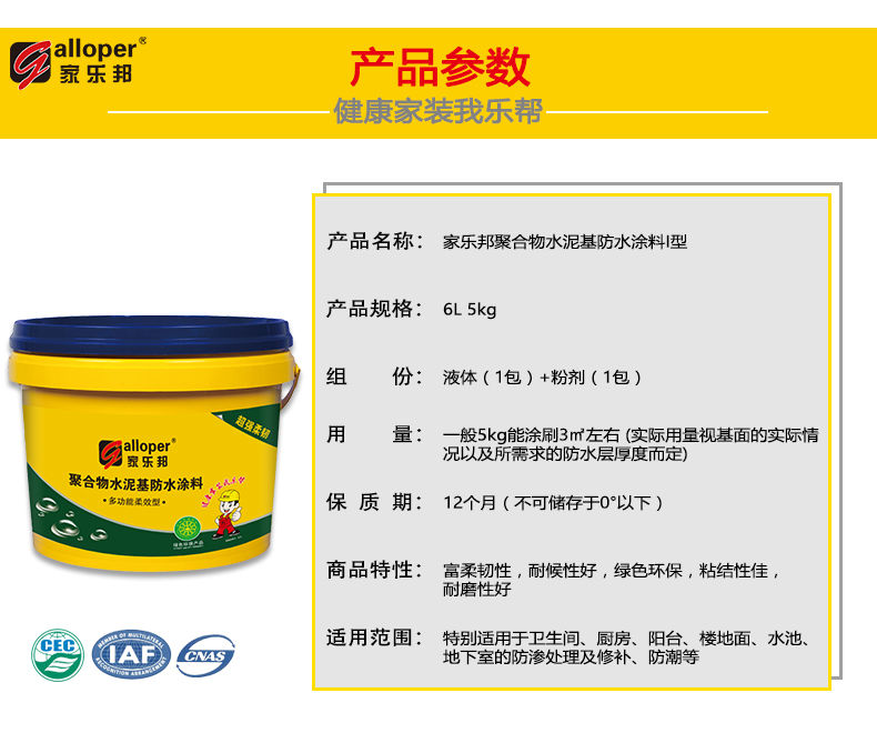 家樂邦聚合物水泥基防水涂料廚房衛生間防水材
