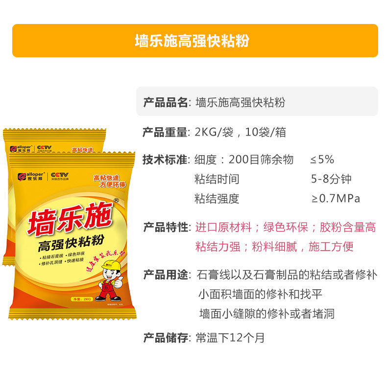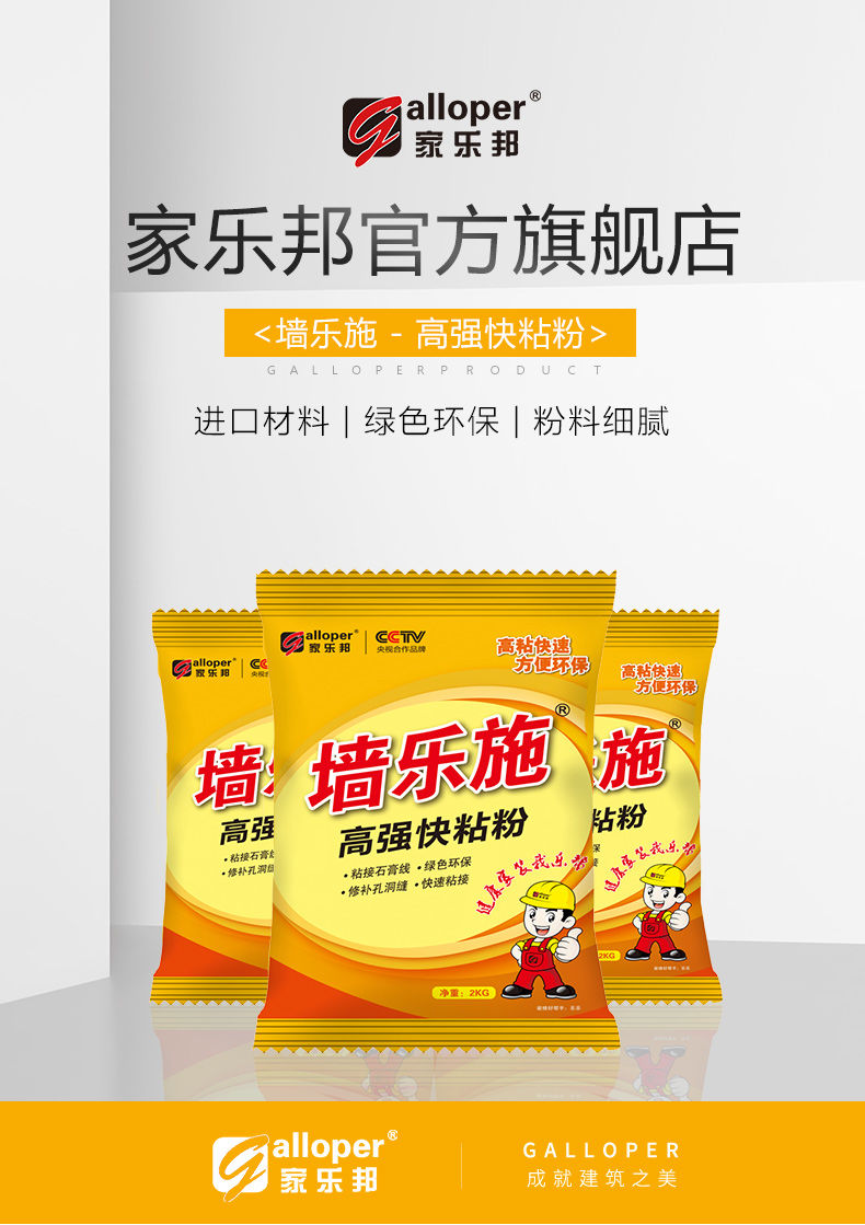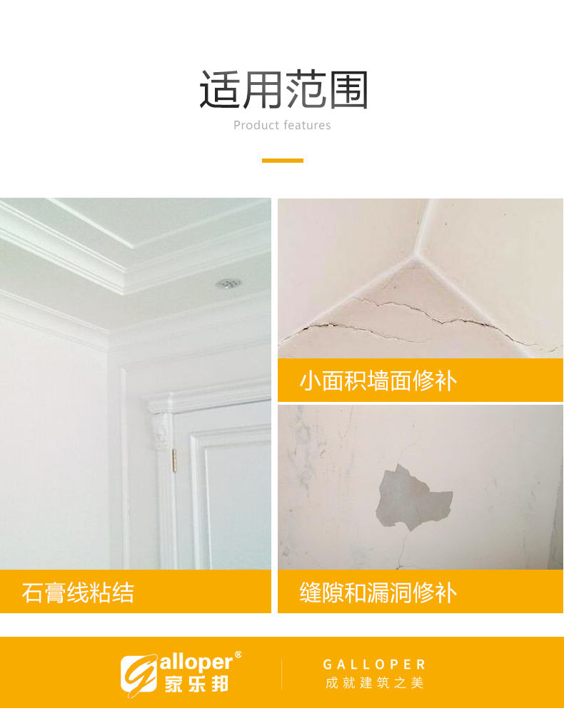 家樂邦墻樂施快粘粉粘接石膏線膠補墻膏速干環