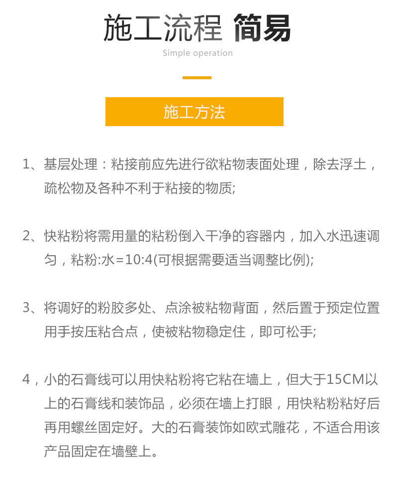 評價:好大一包,家里石膏線掉下來了一米多長,請工人又覺得不值當的,買了這個膠真的很好使,自己就弄好了,大贊