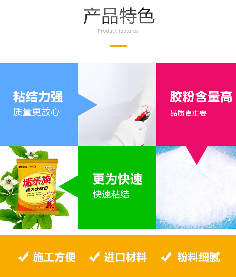 評價:收到貨好幾天了一直沒評價,家樂邦快粘粉很不錯,賣家發貨也很快,客服人員還是蠻熱情的,我跟賣家說能不能說送我一個工具,協商之后說送給我一把小鏟子,挺好的,拿回來我老公就試著用了,還不錯,補墻膏粘性很好,簡單操作,不專業的老公操作起來也得心應手,好評,下次有需要還會再來