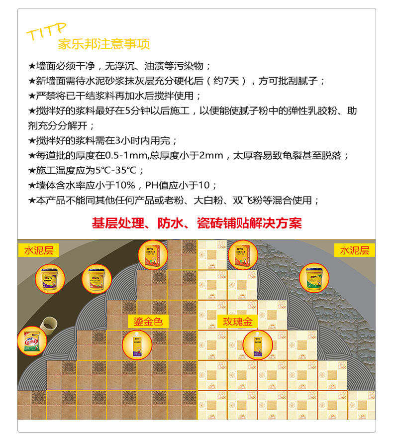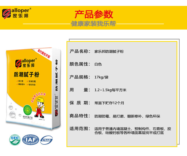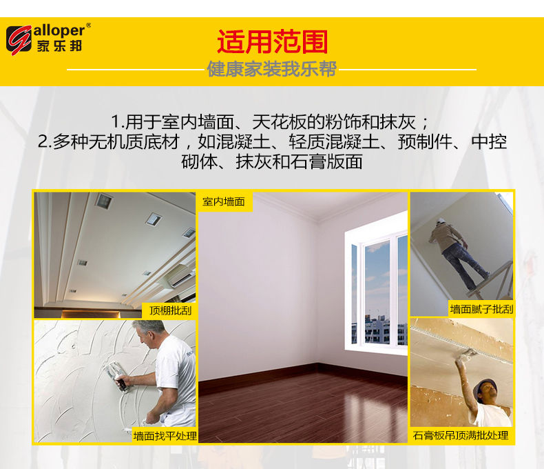 解釋:GALLOPER/家樂邦,讓您美好的生活不被漏水打擾!您的滿意是我們最大的動力,感謝您對家樂邦耐水防潮膩子粉的評價!家樂邦官方旗艦店