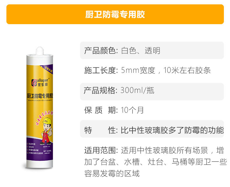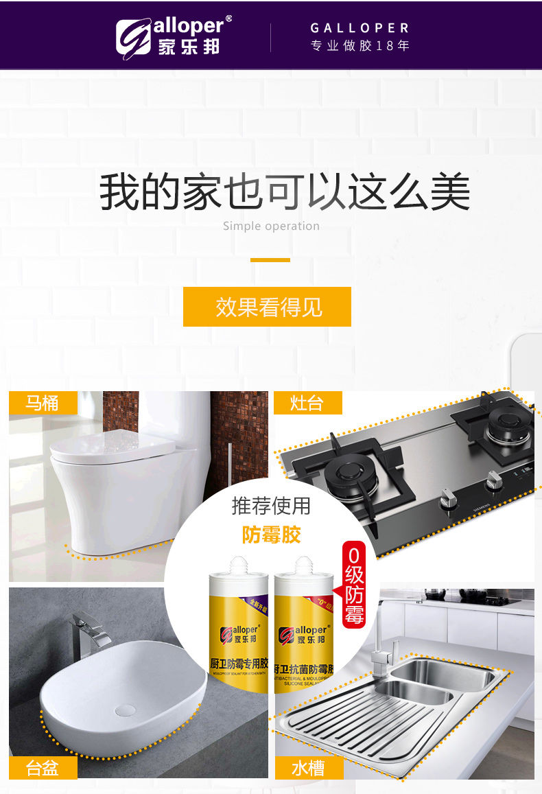 【家樂邦玻璃膠】防水防霉廚衛馬桶收邊密封膠