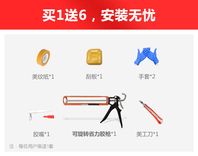 評價:店家很用心啊,贈送了全套工具,不用自己再找工具了,直接就可以用,家樂邦玻璃膠很好,只買了一個試驗一下 ,準備開始二次購買了。