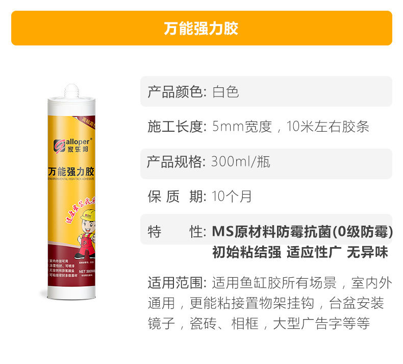 評價:我在露天陽臺想用瓷磚做一個水缸接雨水澆花,買了兩瓶做大型魚缸的家樂幫玻璃膠,沒想到粘瓷磚也粘得非常很牢固,非常好用。本產品質量好!服務好!