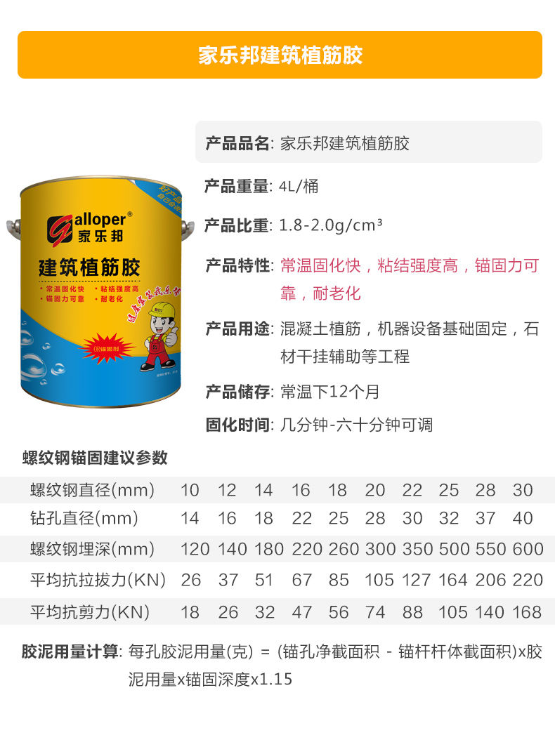 家樂邦植筋膠環氧型建筑植筋膠注射式加固錨固