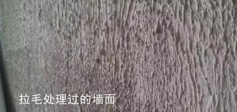 3、造毛:將界面劑和水泥按1:2比例攪拌成漿糊狀,用粗糙的滾筒工具涂抹在基層上。