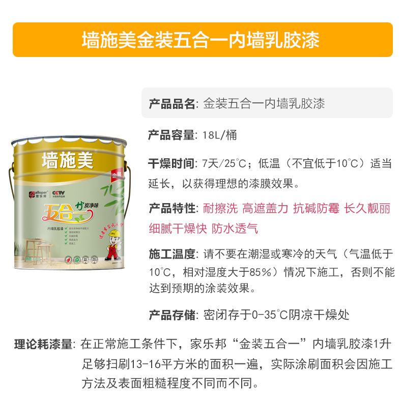 家樂邦凈味亞光墻面乳膠漆抗污凈味內墻乳膠漆